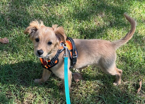 Now in a foster home with two big dogs, Air Bud is thriving! Nothing fazes this brave little guy — not even the vacuum cleaner. He’s lively, playful, and always ready to snuggle.