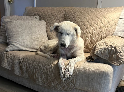 Willow has excellent house manners and sleeps peacefully through the night. She is still on her journey to full recovery—her coat continues to grow back, and she’s gaining the weight she so desperately needed—but the transformation has already been incredible. She looks so much healthier and happier than the fragile, emaciated girl who first came into our care.
